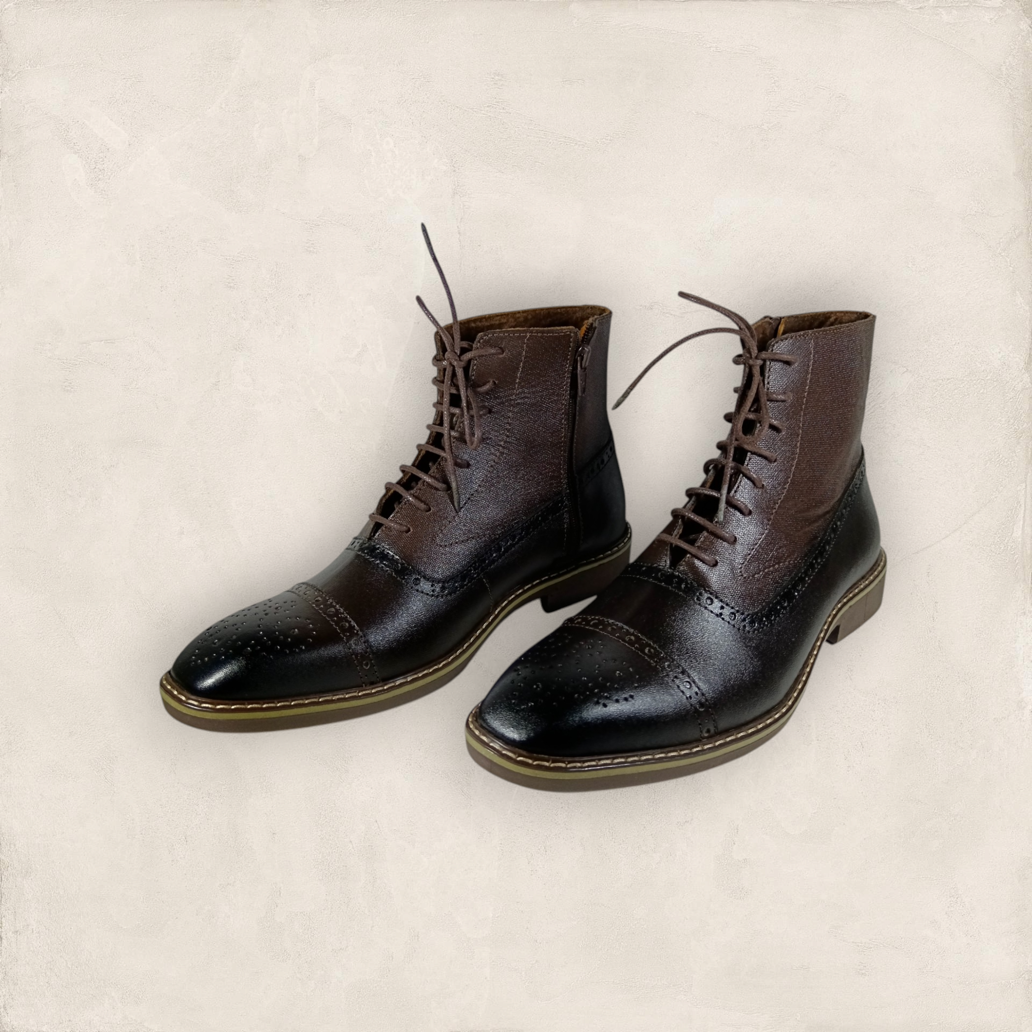 Bota de hombre estilo Oxford, en horma italiana refinada y suela con tacón bajo. Elegante y sobria, perfecta para un look formal con estilo europeo.